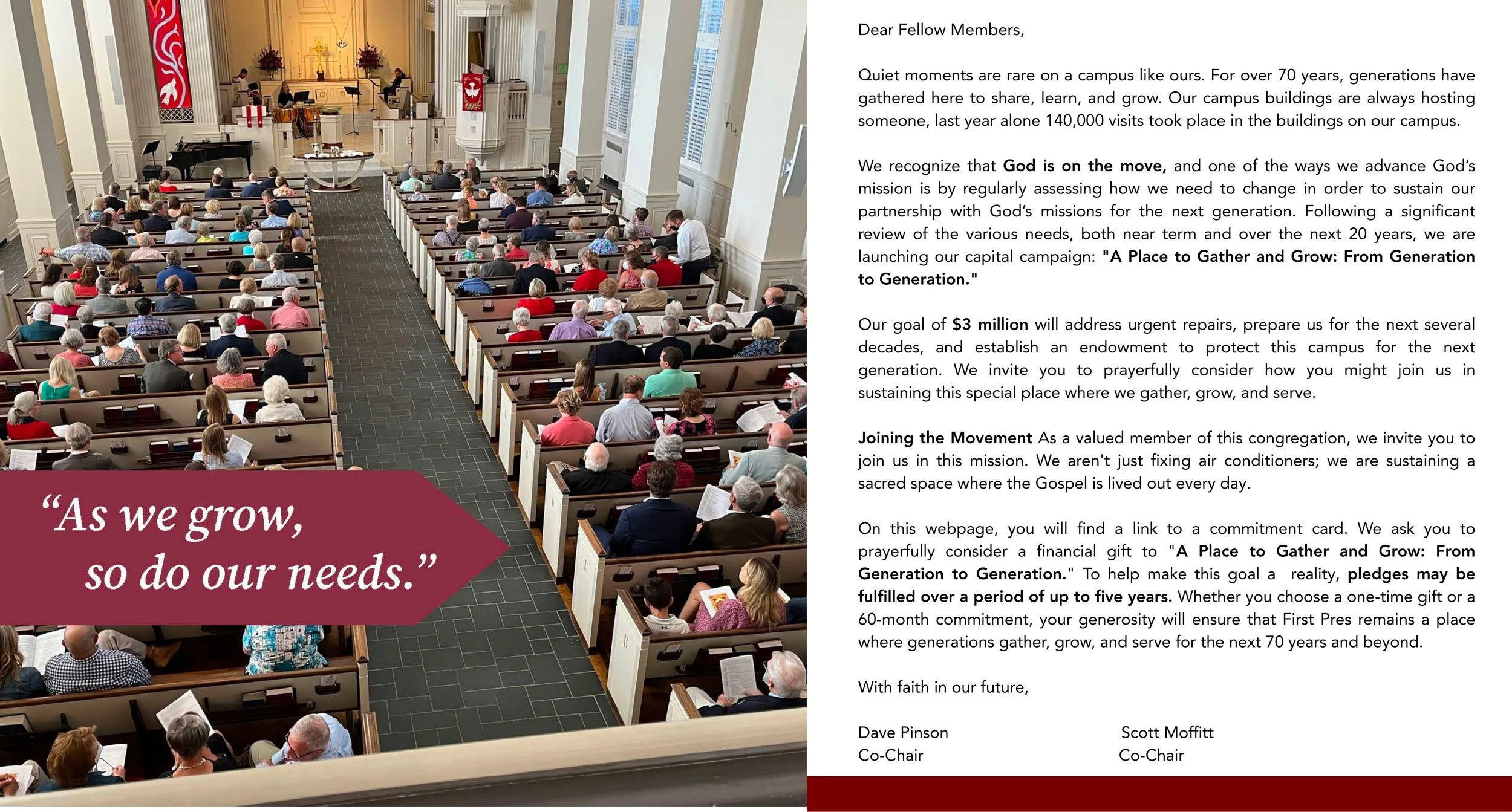 Strategic Updates ($1 million): Modernizing spaces to serve our growing congregation over the next 10 years.
